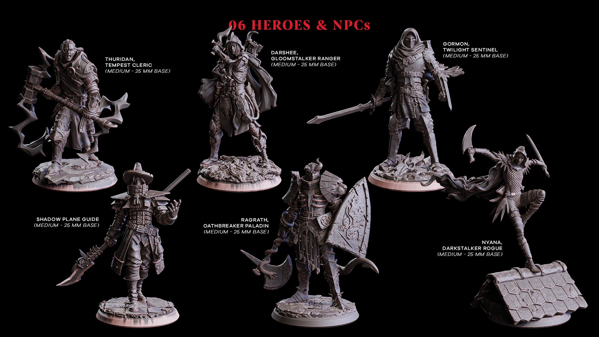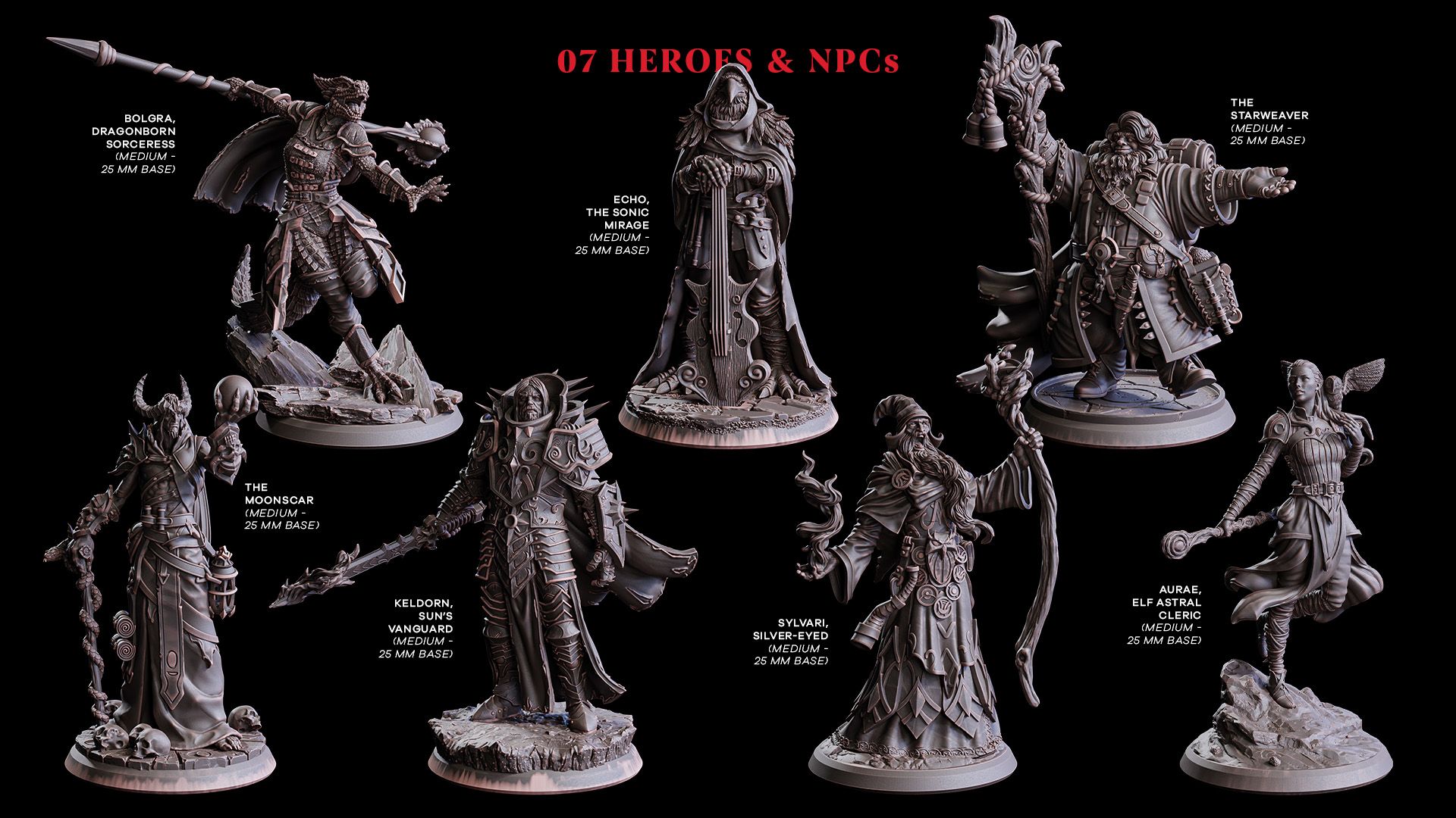 Enjoy a nice mix of original and classic creatures, heroes, villains and NPCs, beautifully designed to play or paint.
