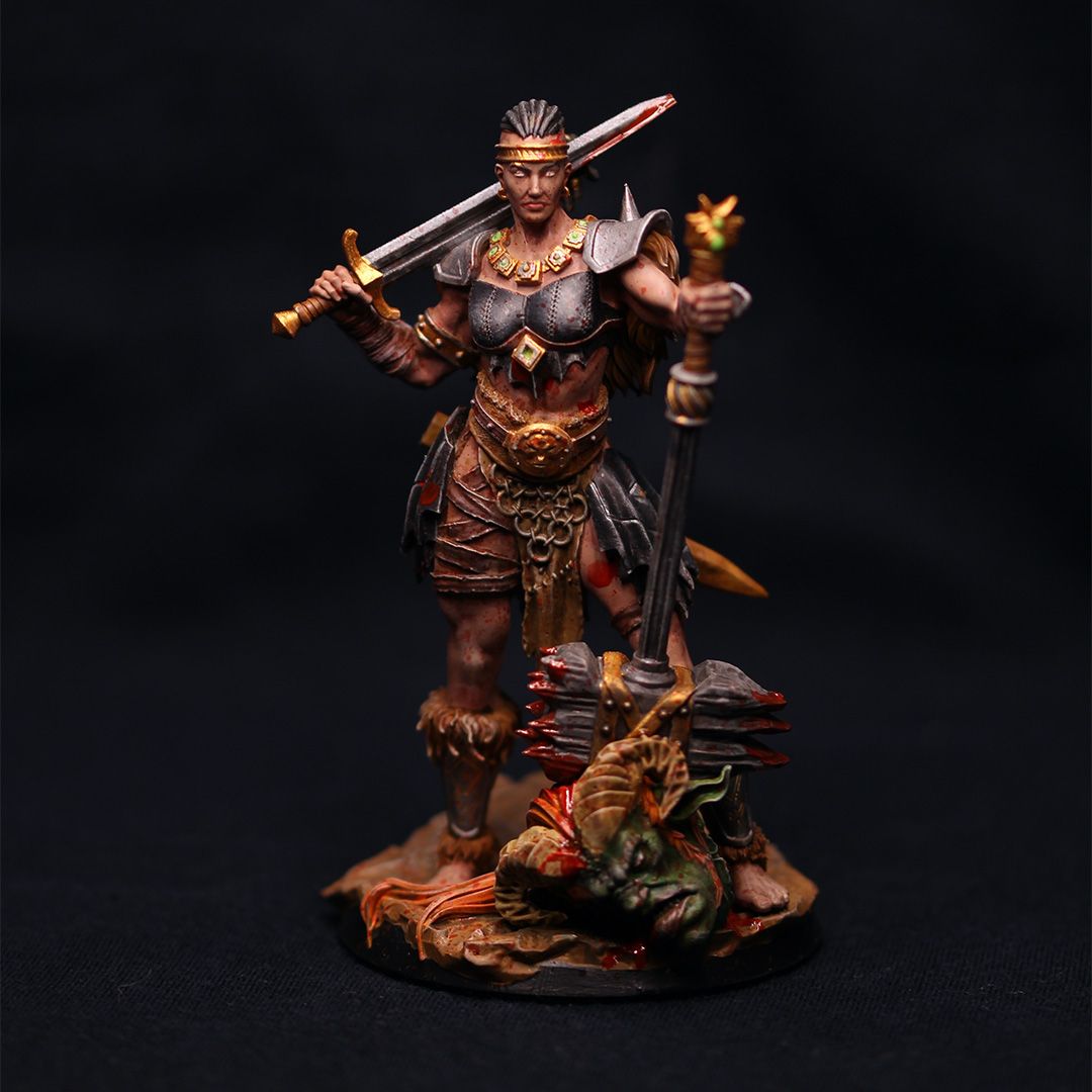 Execution of painting techniques, including texture, shading, skin and advanced methods like Non-Metallic Metal (NMM) and Object Source Lighting (OSL).